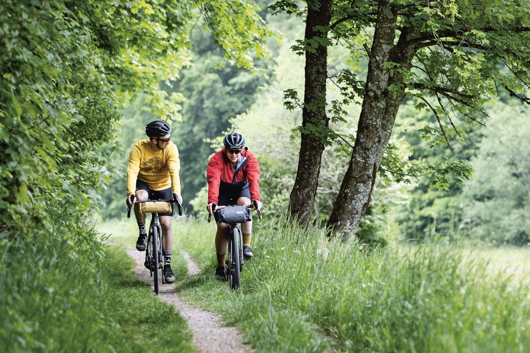 Je nach Hersteller lassen sich bis zu 47 Millimeter breite Reifen montieren, einige Modelle lassen gar mit den etwas kleineren 27,5-Zoll-Rädern Mountainbikepneus zu. Damit fühlt man sich auf langen Schotterstrecken wohl und kann sogar leichte Geländefahrten machen.
