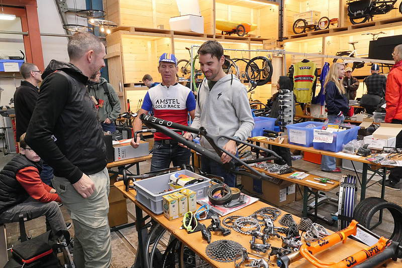 Am Veloteile-Flohmarkt kommt von raren, alten Komponenten bis zu Rahmen von edlen Gravelbikes alles auf die Verkaufstische. Die Preise sind oft Verhandlungssache. (Foto: ZVG)