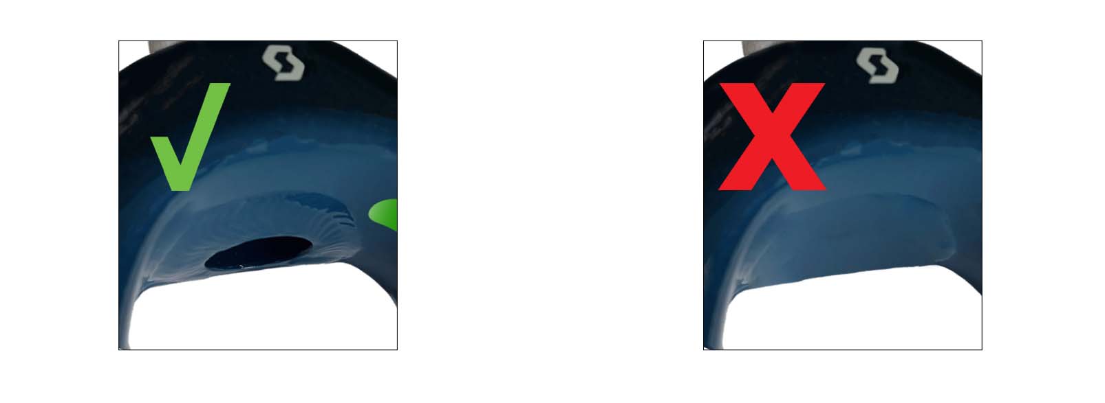Wenn unter der Gabelbrücke ein grüner Punkt zu sehen ist und/oder ein Loch beim Übergang zum Steuerrohr vorhanden ist, ist das Velo laut Scott nicht betroffen. (Foto: ZVG)