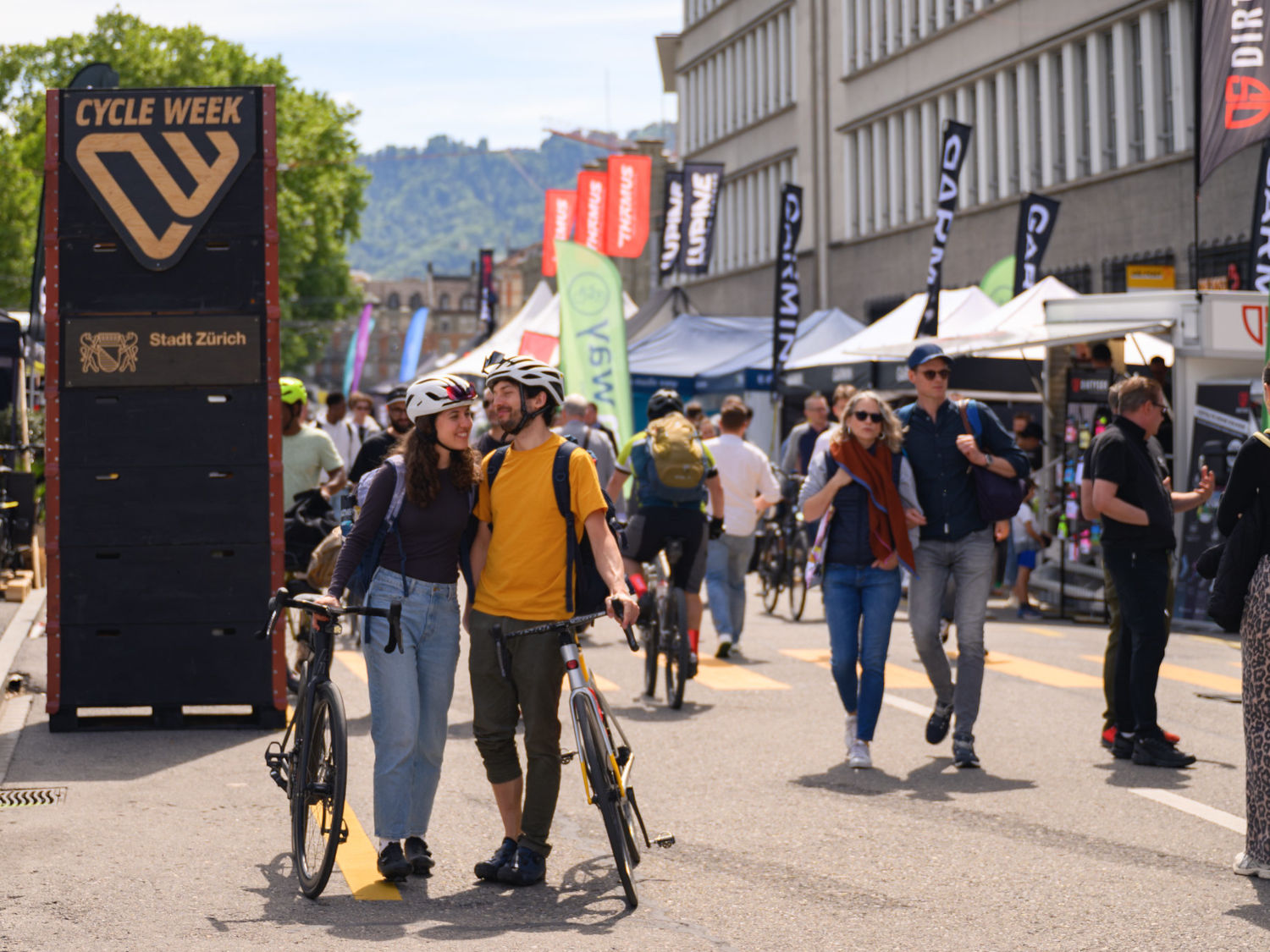 Als nationales Velofestival hat die Cycle Week den Anspruch, dem Velo in all seinen Facetten eine Bühne zu bieten. Dazu setzen die Veranstalter auf ein dezentrales Konzept mit drei Standorten: Alltagsvelos und passendes Zubehör werden gleich hinter dem Hauptbahnhof Zürich in der Europaallee ausgestellt, wo eine Eventzone mit Gastroangebot ausser Velobegeisterte auch Passanten anlockt.