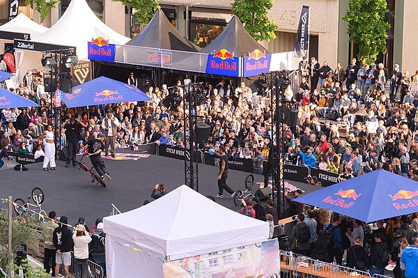 Die Flatland-Contests und Kunstrad-Darbietungen auf der Bühne am Gustav-Gull-Platz zogen jeweils viel Publikum an. (Foto: ZVG)