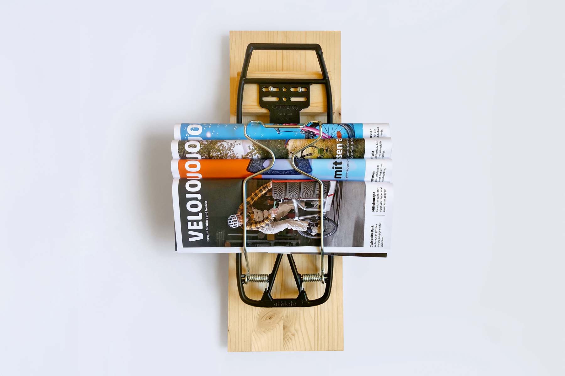 Wer einen alten Gepäckträger auf einem passenden Brett montiert, erhält einen coolen Zeitschriftenhalter für die Wand. Velojournal zeigt, wie es geht.