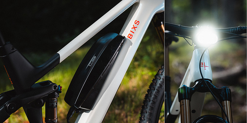 Die Schaltung stammt von Shimano und die Laufräder liefert DT Swiss. Zudem hat der Hersteller Bixs die die «Sign-E Carbon»-Modelle ab Werk mit einem Scheinwerfer ausgestattet, der mit dem Akku des E-Mountainbikes verbunden ist – beim Topmodell «Sign-EX Carbon» einer von Supernova, bei den anderen beiden Modellen einer von Litemove.