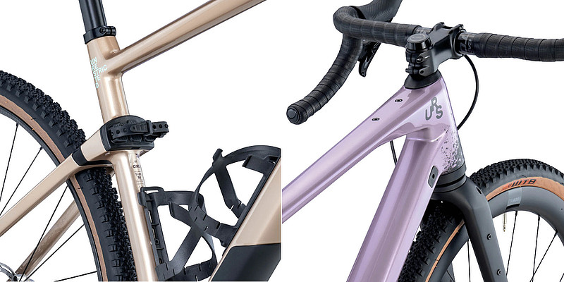 Die «Urs Two»-Serie ist um etwas einfachere Rahmen und Gabeln aus Carbon aufgebaut, bietet aber wie die exklusiveren Geschwister auch ein Staufach im Unterrohr und zahlreiche Gewinde und Ösen zur Montage von Taschen und anderem Zubehör – und ein rundes Sitzrohr.