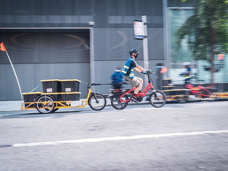 Velokuriere von Dutch-X liefern mit «Tern» Velos und «Carla Cargo» Anhängern ihr Waren aus. (Foto: ZVG)