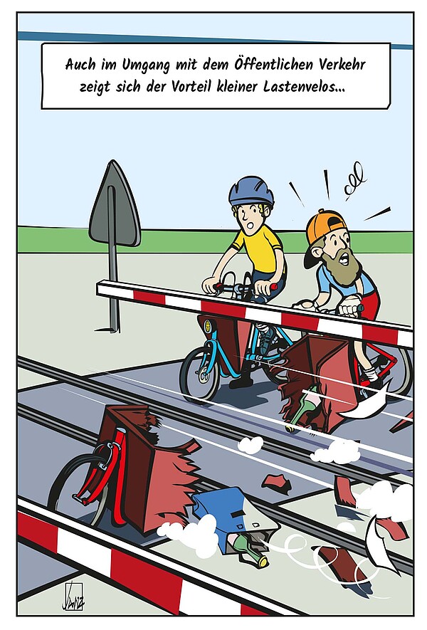Auch im Umgang mit dem Öffentlichen Verkehr zeigt sich der Vorteil kleiner Lastenvelos ...