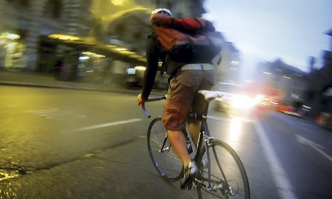 «Ich bin Nummer 67, wenn ich fahre, habe ich das Gefühl zu fliegen. Als würde ich die Welt von oben betrachten. Dieses Gefühl der Freiheit macht ziemlich süchtig.» Mit diesen Sätzen beginnt der erste Langspiel-Dokumentarfilm «Cyclique» des jungen Filmemachers Frédéric Favre. Ausgesprochen wird dieses Bekenntnis von einer der drei Hauptfiguren des Streifens, von Caroline Christinaz. Die eingefleischte, 28-jährige Kurierfahrerin steht an einem Scheideweg. Sie möchte eigentlich den Beruf wechseln und einen Job als Journalistin antreten. Mit diesem Entscheid tut sie sich schwer. Ihrem zwei Jahre älteren Kollegen Raphaël Pfeiffer steht ebenfalls eine einschneidende Veränderung bevor. Zwar ist auch er süchtig nach diesem Job. «Von einer Mission erfüllt zu sein, das liebe ich. Ich ziehe eine Kuriertasche an und schon bin ich jemand anderes», sagt Raphaël. Und die Entbehrungen, die Härte dieses Jobs und die Aussage, dass dies nur ein Job für Junge sei, kontert er: «Ich glaube, man kann das sein Leben lang machen – auch wenn ich jetzt das Gefühl habe, dass ich am Ausbrennen bin.» Raphaël fährt bereits seit neun Jahren als Kurier. Er wird die Schweiz bald verlassen. Deshalb steht der Lausanner Velokurierfirma Vélocité ein Generationenwechsel bevor. Den Platz für Raphaël wird bald Matila Corminbœuf einnehmen. Zuvor muss der 21-Jährige eine harte Bewährungsfahrt hinter sich bringen. «Regen, Wind und Stress – eine ziemliche Grenzerfahrung», gibt er nach seinem ersten Einsatz zu. «Es ist die Realität des Berufes», so sein Fazit – und er bekommt den Job als Kurierfahrer auf den Strassen der hügeligen Stadt Lausanne.