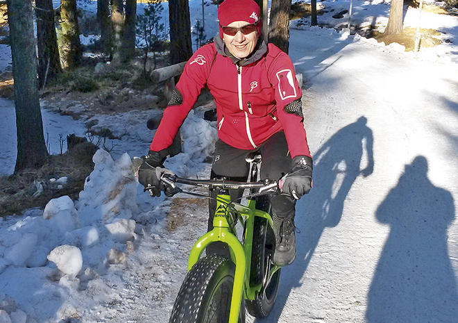 Weisse Streifen ziehen sich über braune Wiesen. So sieht Winter im Oberengadin zum Jahreswechsel aus. Auf den weissen Streifen, insgesamt gut 20 Kilometer, drehen die Langläuferinnen und Langläufer ihre Runden. Auch ich trainiere ein-, zweimal auf dem Kunstschnee, dann wird es langweilig. Was könnte man sonst noch tun, um in Form zu bleiben? Mein Blick fällt auf das Fatbike, das vor dem Skisportgeschäft platziert ist. «Zu vermieten» steht drauf. Ich trete näher an das merkwürdige Monster heran. Das Fatbike ist ein simples Teil, ungefedert, mit nur acht Gängen und sehr dicken Pneus. Es ist schwer, auch im Vergleich zu meinem Mountainbike, das schon alt und gewiss kein High-End-Exemplar ist. Schon oft habe ich mich gefragt, wozu diese Dinger gut sein sollen. Jetzt will ich es ausprobieren.