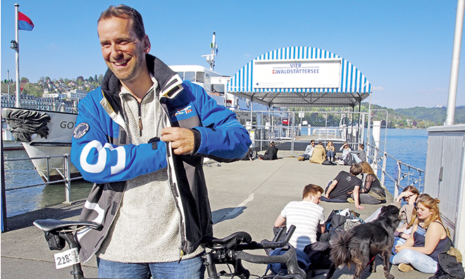 Daniel Rumo, der schon an vielen Triathlon-Wettkämpfen teilgenommen hat, unterrichtet in Littau, das seit 2009 zur Stadt Luzern gehört. Von seinen Schülern fahren die wenigsten Velo. «Im ganzen Schulhaus hat es etwa 220 Kinder und Jugendliche, im Velounterstand stehen aber selten mehr als sechs, sieben Räder. Manchen Schülern müssen wir zuerst zeigen, wie man schaltet. Ich lasse sie einen Parcours fahren, über Hindernisse, im Kreis, eine kleine Treppe hinab. Das ist auf die Dauer langweilig. Aber nach zwei Stunden sieht man, dass sie anders fahren – am Hang versuchen sie zum Beispiel nicht mehr, im höchsten Gang zu starten.»