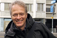 Tobias Schär erzählt, wie der Veloblitz bereits heute mit lokalen Betrieben zusammenarbeitet. Die Kuriere transportieren unter anderem lokal produzierte Schokolade, Gebäck und Würste, aber auch vor Ort reparierte Kaffeemaschinen, Reisekoffer und Textilien.