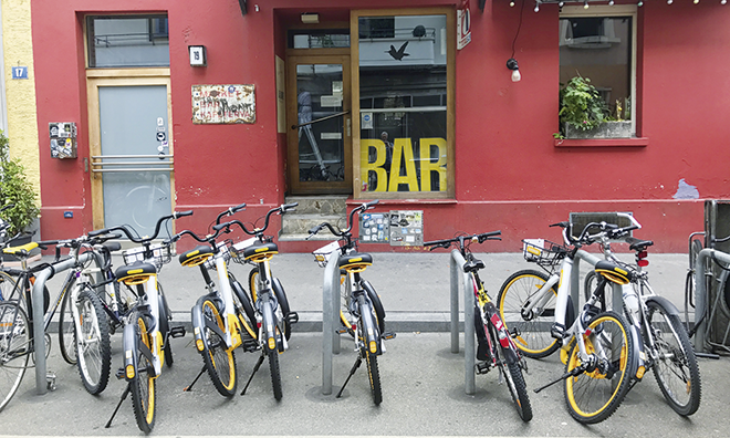 Die Hemmschwelle, ein geliehenes Rad an einem ungeeigneten Ort abzustellen, sei niedriger als bei einem Velo, das einem gehört, heisst es dagegen bei Fussverkehr Schweiz. Falsch parkierte Zweiräder auf dem Trottoir seien problematisch für Sehbehinderte, und sie versperrten Eltern mit Kinderwagen den Weg. In Zürich gesteht das zuständige Tiefbauamt OBike maximal zehn Prozent der öffentlichen Plätze zu. «Eine vorläufige Regelung, die den gesteigerten Gebrauch des öffentlichen Raums berücksichtigt», wie Sprecher Mike Sgier gegenüber Velojournal erklärt. Auf die Beanspruchung des öffentlichen Raums angesprochen, heisst es bei OBike, dass man sehr bemüht sei, falsch parkierte Velos zeitnah wegzuräumen oder sie gemäss der Zehnprozentregel zu verteilen.