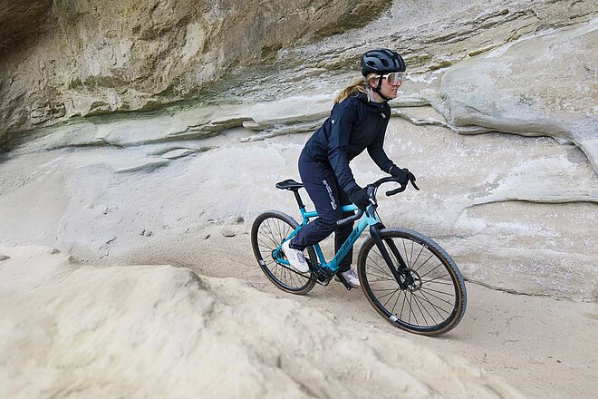 In Kombination mit einem Gates-Zahnriemen besitzt das Gravelbike damit einen Antrieb, der wartungsarm ist und präzise im Stand oder auch unter Volllast geschaltet werden kann.