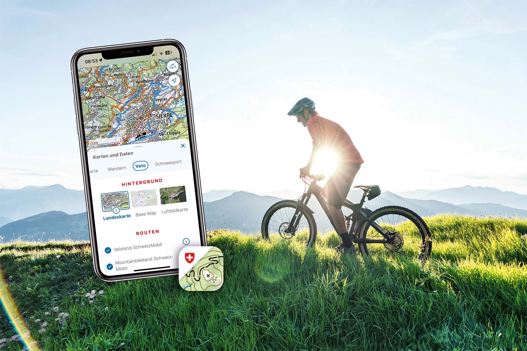 Planen Sie gerne Velotouren, aber Ihnen fehlt das Gefühl für die Zeit? Mit der Swisstopo-App haben Sie alles im Griff! Ob gemütlich mit dem Citybike oder sportlich mit dem Mountainbike: Sie bestimmen das Tempo, und die App zeigt Ihnen präzise die Ankunftszeit an. Alle offiziellen Velorouten von SchweizMobil sind bereits integriert, und dank der Begleiterfunktion wissen Sie stets, wo es langgeht. Streckensperrungen und Schliessdaten werden automatisch angezeigt, sehr entspannend. Und das Beste: Ihre Lieblingstouren können Sie ganz einfach mit Freundinnen und Freunden teilen.