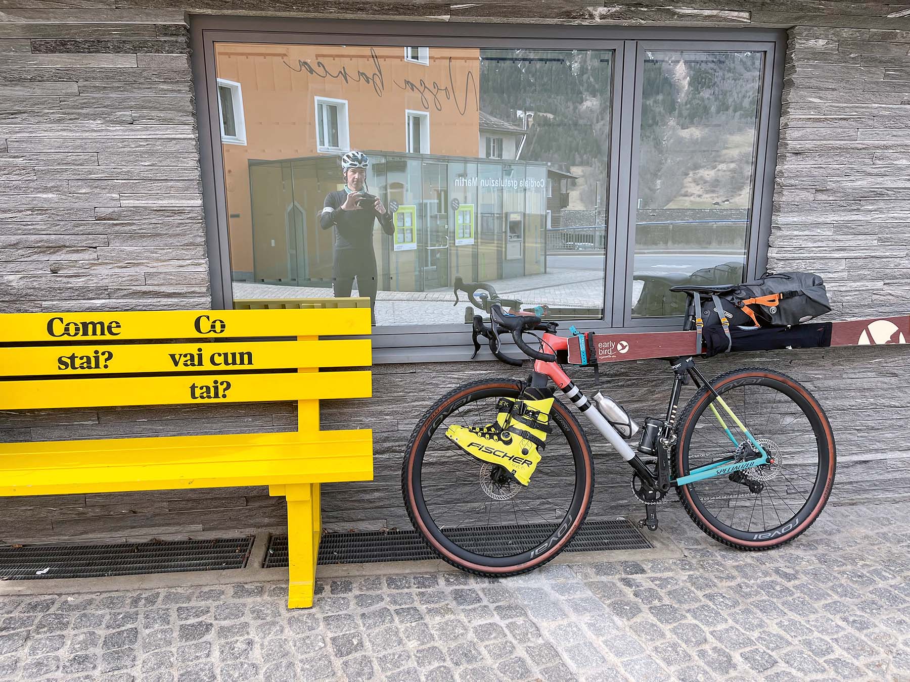 In der Übergangsphase im Frühling 2021 fiel mir der Entscheid schwer, mich für die Ski oder das Velo zu entscheiden. So entschloss ich mich, meine zwei Passionen Velo- und Tourenskifahren zu verbinden: konsequent eine Linie von A nach B fahren, mit eigener Muskelkraft. Komme, was wolle.