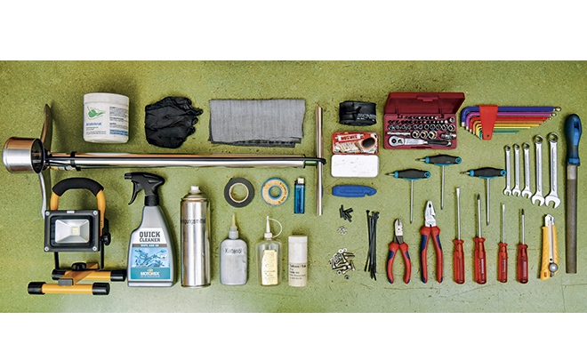 Für die gängigen Unterhalts- und kleinere Reparaturarbeiten am Velo braucht es nicht viel: Standardwerkzeug und etwas Pflegemittel, gutes Licht und eine wirkungsvolle Seife für die Handreinigung nach der Arbeit. Was es sonst noch braucht, erfahren Sie hier.