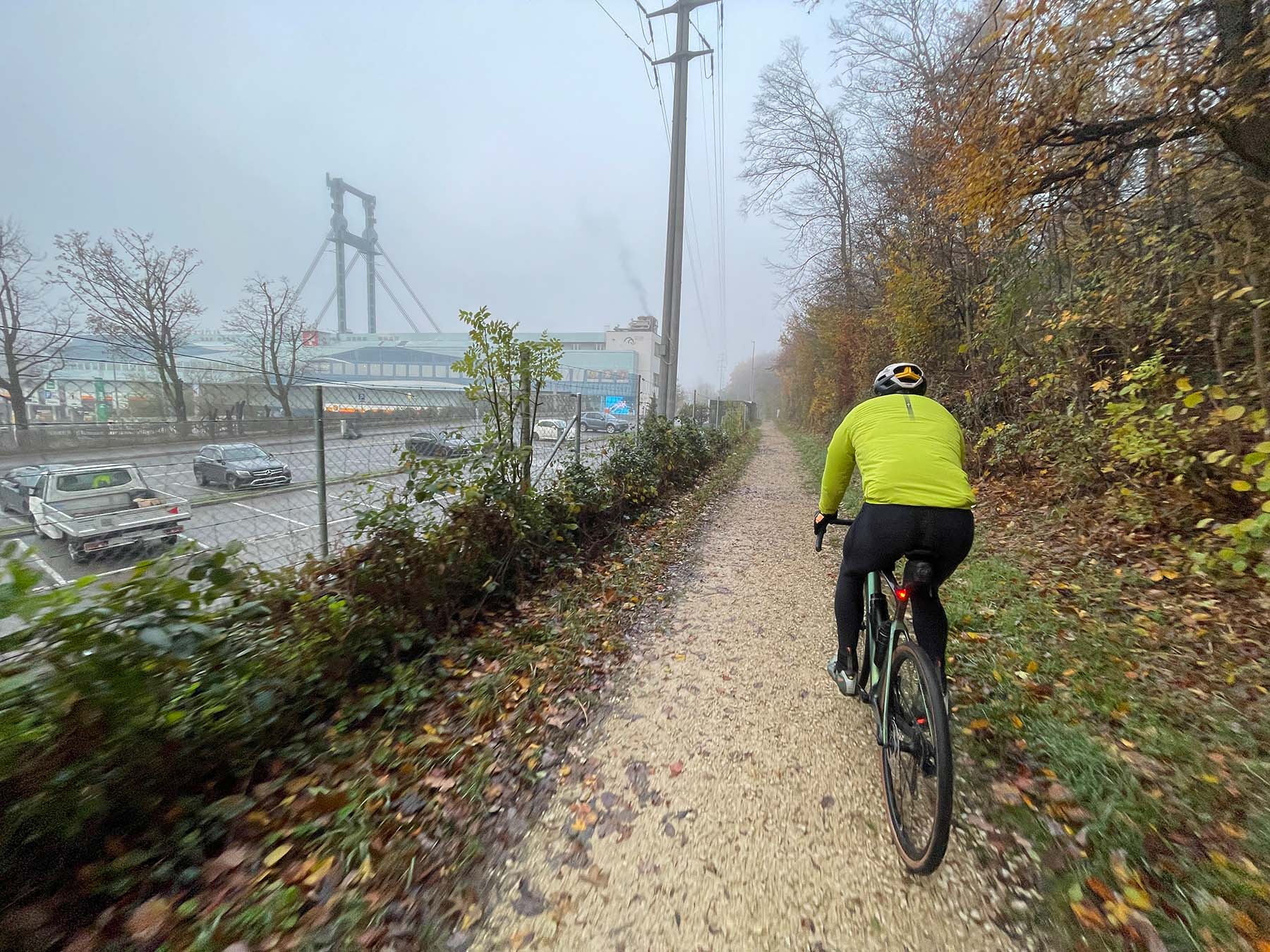Die im Sommer bei Spaziergängern beliebten Uferwege sind jetzt menschenleere Gravel-Strecken. Die perfekte Wintertour, kein Dichtestress, kein Auskühlen in Abfahrten. Wo keine Steigungen, da keine Abfahrten. Tönt locker, wären da nicht die grosse Distanz und das garstige Wetter.