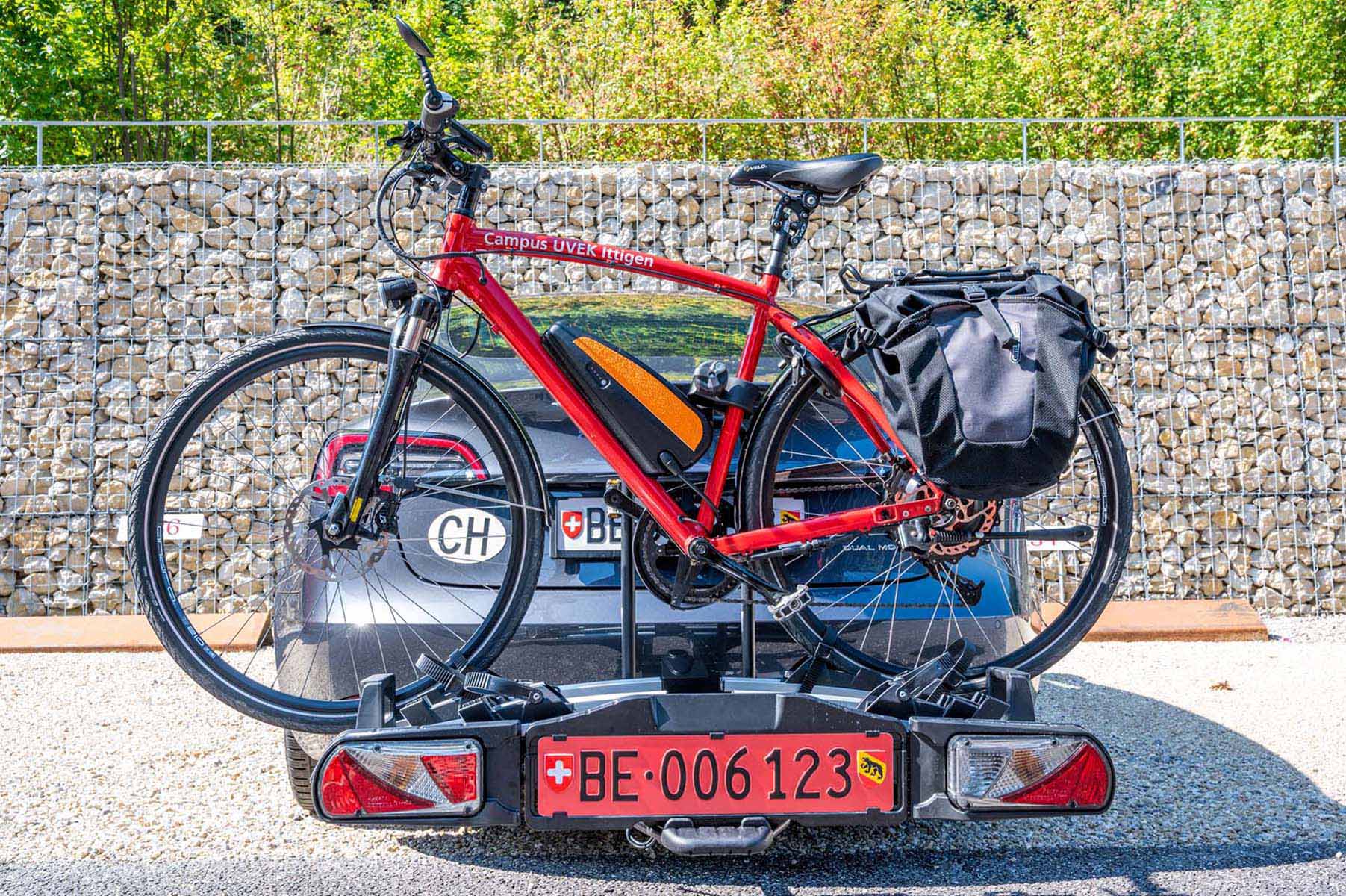 In der Schweiz, in Deutschland, in Österreich und Italien ist das Anbringen einer Warntafel an einem Fahrradheckträger für Autos nicht vorgeschrieben. Anders sieht das jedoch in Frankreich, Portugal oder Spanien aus. Wer mit Auto oder Camper und Velo in die Ferien reist, tut gut daran, sich über die jeweiligen Strassenverkehrsvorschriften zu informieren.