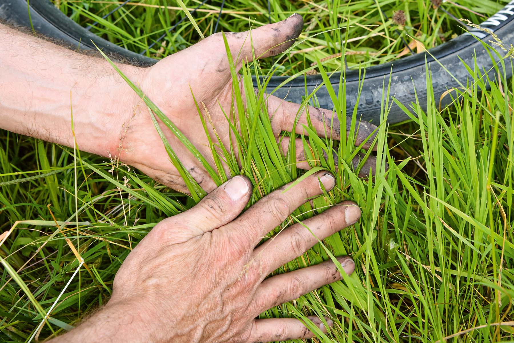 Grössere Reparatur- oder Service-Arbeiten unterwegs lassen sich besser und bequemer ausführen, wenn das Velo nicht am Boden liegt. Meist findet sich dafür ein Baum mit einem auskragenden Ast. (Fotos: Marcel Kaufmann)