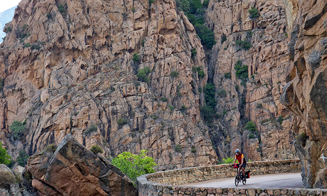 Korsika wird von fast 7000 Kilometern Landstrassen durchzogen. Viele bergig, kurvig und nahezu Autofrei. Ideale Voraussetzungen, um die Insel per Velo zu erkunden. Die Gastfreundschaft der Korsen ist sprichwörtlich, besonders jenen gegenüber, die zu Fuss oder mit dem Rad unterwegs sind. Unser Autor begab sich auf eine Rundreise um die Insel, bei der er die Gastfreundschaft selbst erlebte. Ein Bericht über Landschaften, Hügel, Wildschweine und den «korsischen Volkssport», das Schiessen auf Verkehrstafeln.