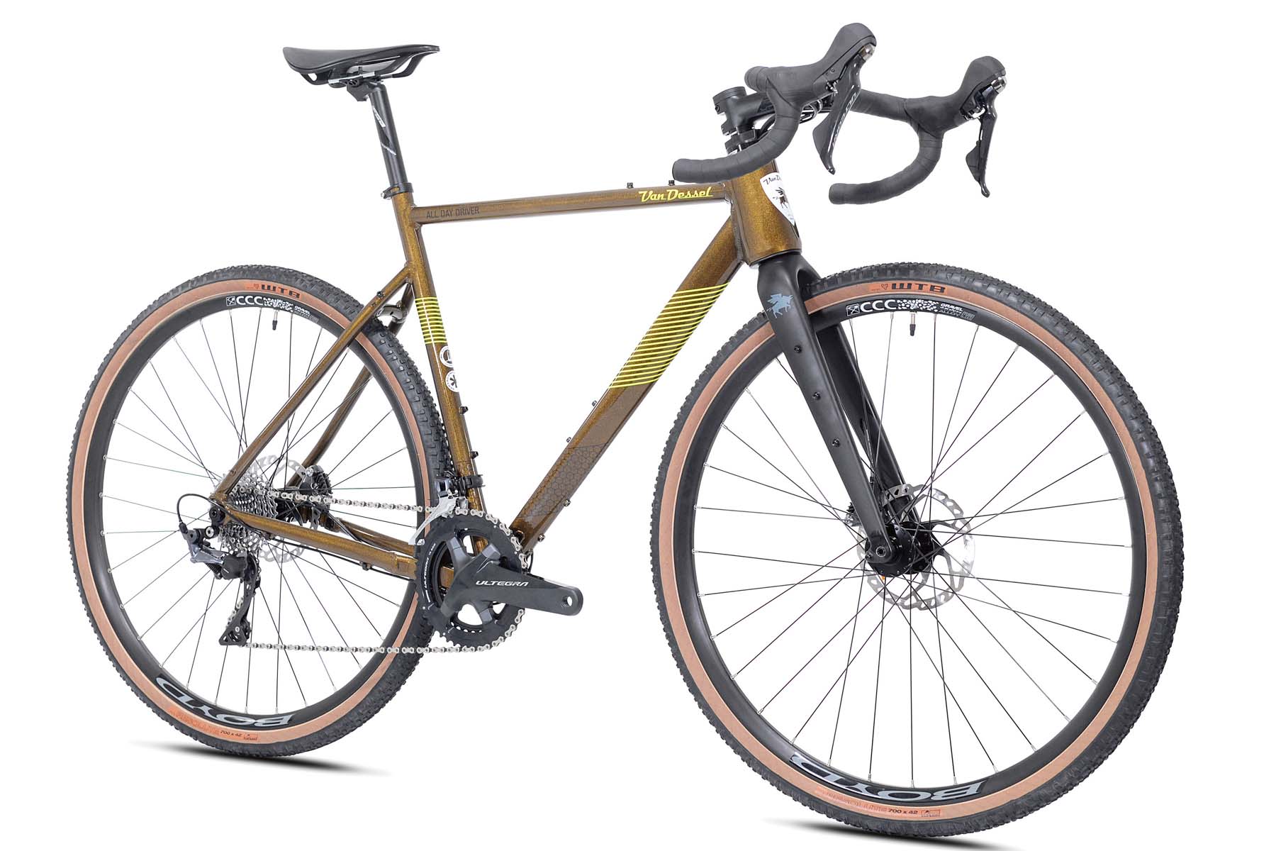 Das Van Dessel «All Day Driver» ist durch die «Geometry Adjust Technology» ein echtes All-in-one-Wunder. Der Alurahmen kann einfach für den gewünschten Einsatzbereich angepasst werden; neutral – Gravel / Road Plus, agil – Road/Cyclocross, stabil – Singletrack / Adventure. Mit der speziellen +/–10-mm-Steuerlager-Platte lässt sich auch der Reach-Radstand justieren. Das Bike zeichnet sich durch eine hohe Vielfalt bei der Reifenwahl aus: 28“ bis 45 mm (45–622), 27,5”-650b bis 57mm (57–584). Steckachsen, Steuerlager und alle Geometrie-Setup-Teile gehören zum Lieferumfang. Das Rahmen-Set ist für Fr. 1379.– ab Februar 2022 in den Farben slate grey/orange und amber/yellow sowie in fünf Rahmengrössen (50 bis 62 cm) erhältlich. Komplettfahrzeuge: auf Anfrage.