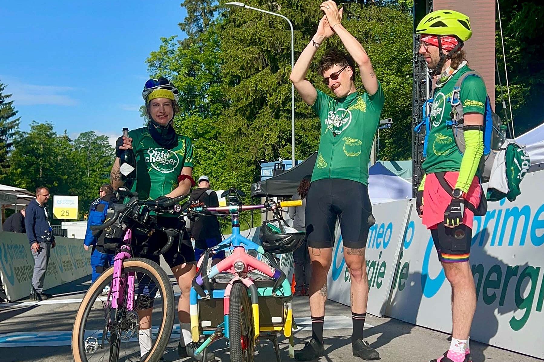 Mehr als 17'000 Höhenmeter und 1000 Kilometer zählt die diesjährige Tour de Suisse. Damit nicht genug: Kuriere des Öpfelchaspers sind die gesamte Strecke ohne fremde Unterstützung gefahren.