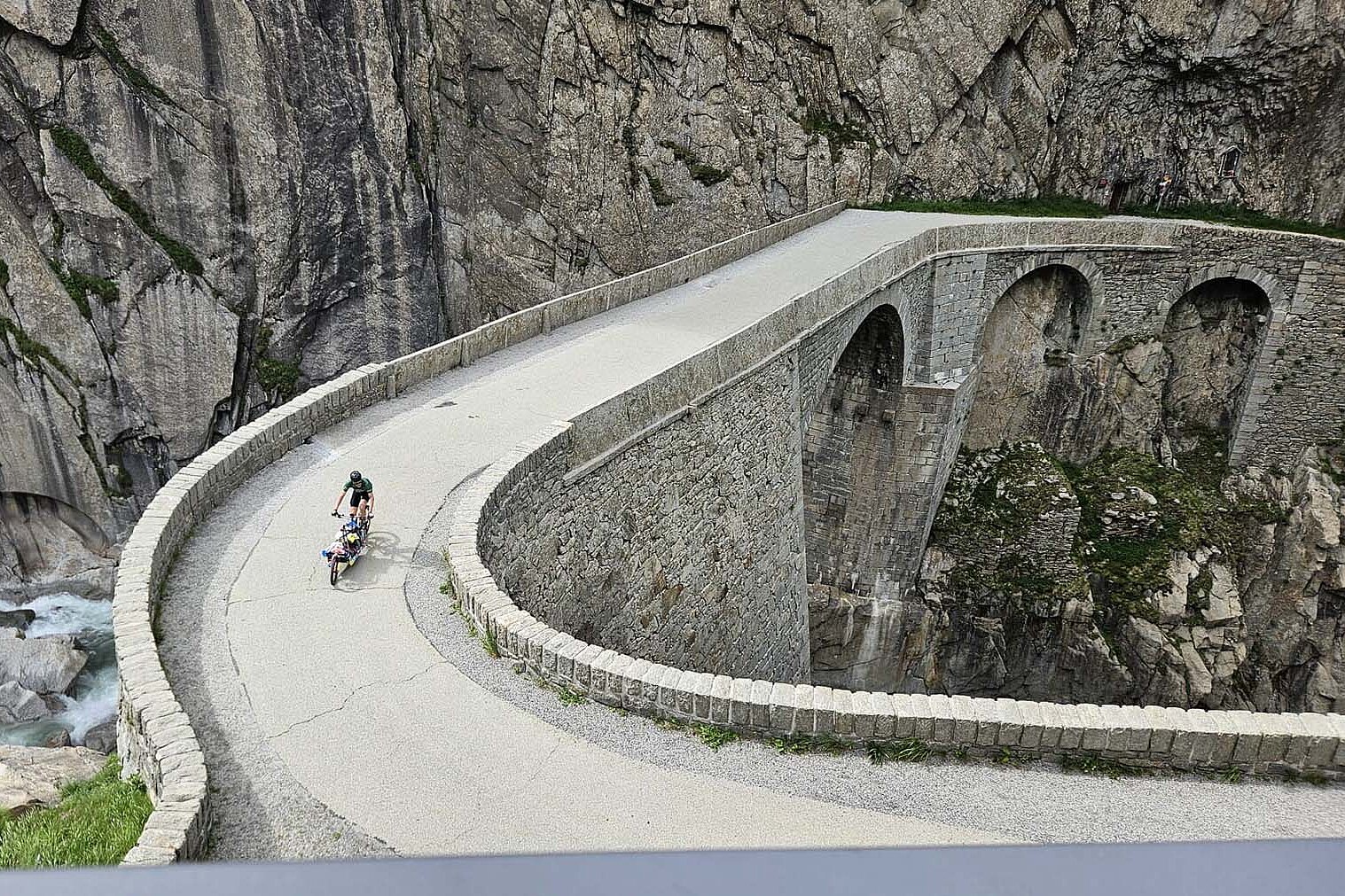 Das Lastenvelo, mit rund 40 kg wohl schwerstes Fahrzeug an der Tour de Suisse, fährt auch steile Ansteige mit. (Foto: ZVG)