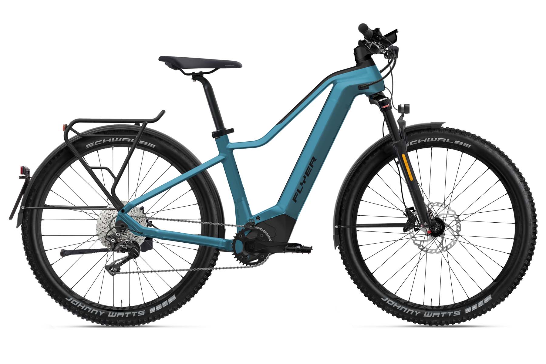 Höchste Fahrstabilität und muskulöse Optik sind charakteristisch für das neue «Goroc2» von Flyer. Der robuste Rahmen, die sportlich-komfortable Sitzposition und 29-Zoll-Laufräder mit 2,6-Zoll-Reifen sorgen für Sicherheit und echte SUV-Qualitäten. Die kräftige Motorisierung mit dem neuen Panasonic-«GX Ultimate Pro FIT»-Motor mit 95 Nm Drehmoment und der 750-Wh-Akku ermöglichen Fahrspass auf langen Distanzen. Pendler finden mit der High-Speed-Version ein potentes Bike, das sich hervorragend für längere Arbeitswege eignet. Ab Sommer 2021 in drei Farben, zwei Rahmenformen (Comfort und Gents) und zwei Ausstattungsvarianten im Fachhandel ab Fr. 5299.– erhältlich.