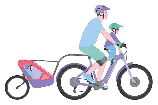 Mit Anhänger oder Oberrohr-Sitz können Kinder bald mit auf den Trail. Höhenmeter-Rekorde wird man so aber nicht mehr knacken. Besser einen Gang und damit auch die eigenen Erwartungen runterschalten. Nicht die Leistung oder das Tempo, sondern das gemeinsame Familienerlebnis zählt.