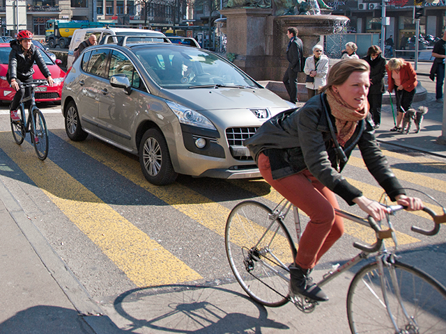 Eine nicht repräsentative Blitzumfrage im Zürcher Kreis 4 ergibt dasselbe Bild: Keine der drei befragten Frauen hat das Gefühl, als Velofahrerin in der Stadt anders behandelt zu werden als die Männer. Auch der Versuch, sie mit Vorurteilen aus der Reserve zu locken, missrät: Sind mehr Frauen mit dem Velo auf dem Trottoir unterwegs, weil Frauen im dichten Stadtverkehr eher Angst bekommen als Männer? Das will keine bestätigen; vielmehr erklären sie, ihnen begegneten etwa gleich viele Frauen wie Männer, die mit dem Velo auf dem Trottoir unterwegs seien. Aber vielleicht benehmen sich die AutofahrerInnen ja anders, wenn sie statt eines Velofahrers eine Velofahrerin vor sich haben? Auch da sind sich alle einig: Wer genügend Routine habe und sich im Verkehr sicher bewege, komme gut durch – egal, ob Frau oder Mann.
