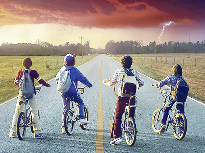 Um sich von Schauplatz zu Schauplatz zu bewegen, sind die vier Hauptakteure in «Stranger Things» – wie es in den Achtzigern üblich war – mit ihren BMX- und Bananensattel-Velos unterwegs. Die Velos wurden mit Bedacht gewählt, und auch die Filmemacher zollen dem Velo Respekt. In einer Episode aus der ersten Staffel lassen sie Polizeichef Jim Hopper (David Harbour) zu einem seiner Polizisten sagen: «Diese Räder sind wie Cadillacs für die Kids.»