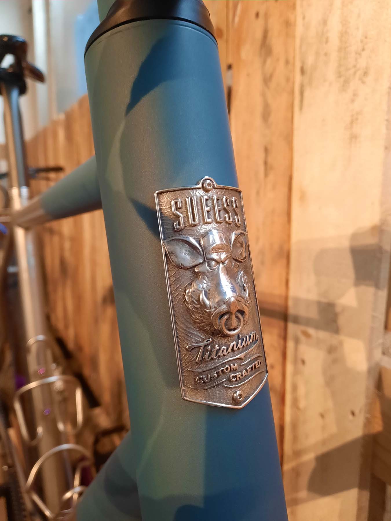 Der sogenannte Headbadge ist kein funktionales Bauteil, sondern eine seiner «kleinen Freuden». Ein Markenzeichen, das er seinen handgefertigten Rahmen ebenso selbstverständlich mitgibt wie die präzise, massgeschneiderte Geometrie. Süess fertigt in Handarbeit und auf Kundenwunsch Velorahmen aus Titanrohren.