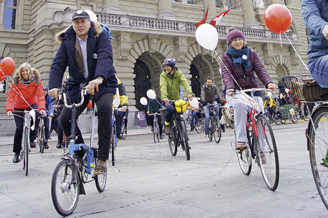 Pro Velo Schweiz freut sich, dass das Anliegen der Initiative so gut unterwegs ist und bis jetzt auch im Parlament gut ankommt. Die Initianten konnten dabei auf breite Unterstützung zählen und haben Partnerschaften gesucht: Zu Beginn der Wintersession hatte der neu gewählte FDP-Nationalrat Rocco Cattaneo mit seiner Fahrt mit dem Rennvelo vom Tessin nach Bern die parteiübergreifenden Eigenschaften des Velos plakativ unter Beweis gestellt. Und kurz zuvor hatte die Unterstützung des TCS dazu beigetragen, dass das Anliegen in bürgerlichen Kreisen weiter an Sympathien gewinnt. Diese Dynamik führte dazu, dass der bundesrätliche Gegenvorschlag ohne Abstriche die Hürde des Ständerats nehmen konnte. Am 30. November hat dieser, dem Rat seiner Verkehrskommission folgend, den Gegenentwurf mit 35 zu