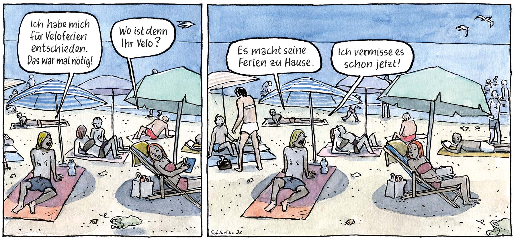 Schlorian sinniert darüber, ob Veloferien am besten mit oder ohne Velo verbracht werden.