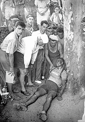 Über eine «leichte Magenverstimmung» klagt in jener Zeit auch mancher Rennfahrer, nachdem er sich ein Bier, einen Schnaps oder was gerade so auf dem Tisch der Gartenwirtschaft stand, geschnappt und kurzerhand hinter die Binde gekippt hatte. Ganz dieser Tradition verpflichtet, «borgt» sich auch der Rennfahrer Abdelkader Zaaf 1950 zwei Flaschen Weisswein. Der Schluckspecht muss nach dem Konsum der Flüssigkeit ein kleines Päuschen einlegen – und schläft. Zwar steigt er nach dem Aufwachen, so schnell es die Umstände erlauben, wieder auf sein Velo und fährt tapfer weiter – allerdings in die falsche Richtung.